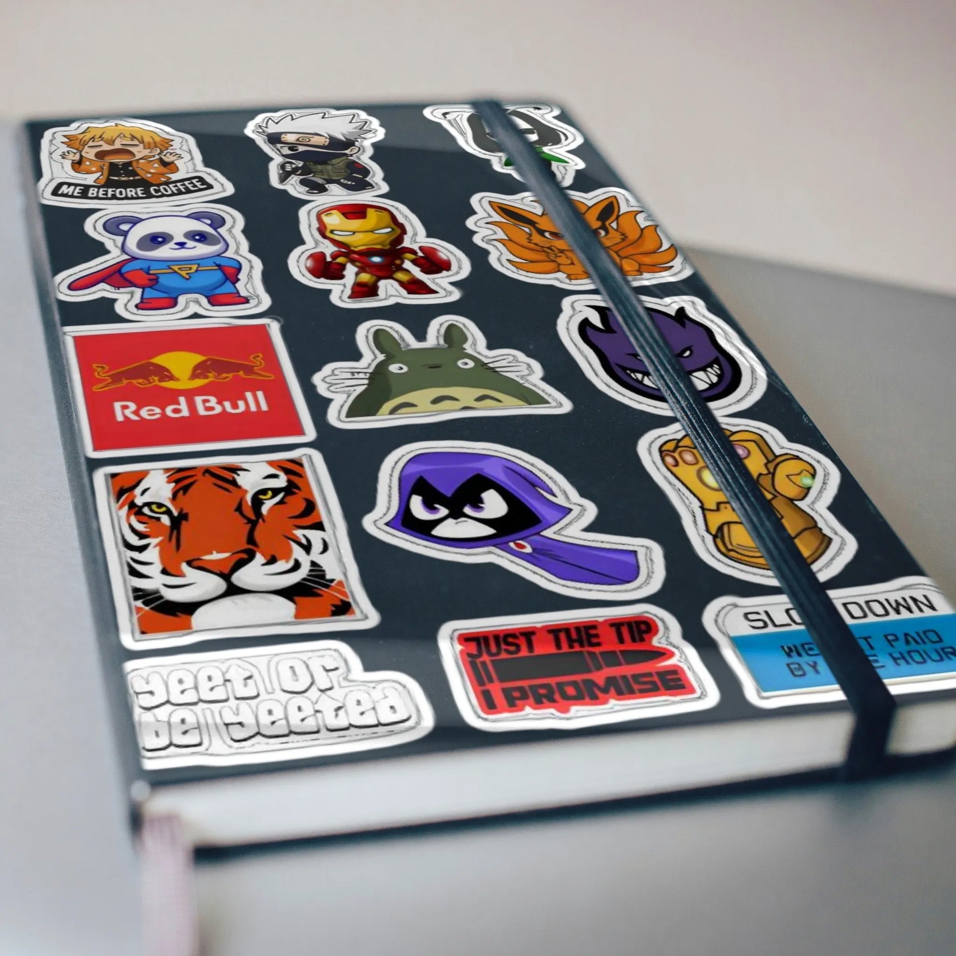Yes. Our stickers use strong adhesive backing that sticks firmly to smooth surfaces like laptops, bottles, phone cases, notebooks, and more. They stay in place without peeling easily.