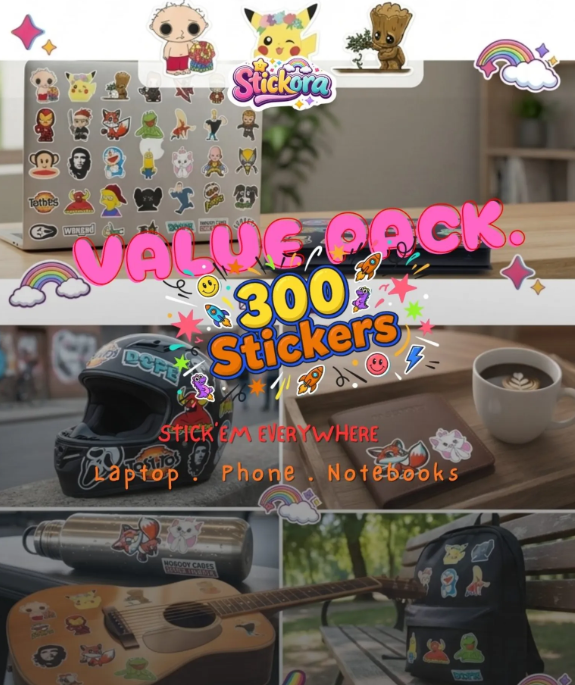 Enjoy a thoughtfully curated collection of 300 premium waterproof vinyl stickers, featuring a wide range of cute, trendy, and vibrant designs—perfect for personalizing your everyday essentials.